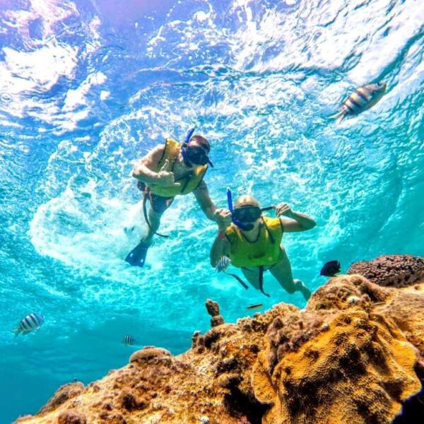Snorkeling in Cozumel is the most popular activity among locals and visitors, as the shallow and turquoise waters create the perfect set up to enjoy the spectacular sea life of the Caribbean. The experienced crew will gear you up and guide you in a two reefs underwater adventure to admire the majesty of the “inner space”. Every snorkel trip is different, so be ready to spot multicolor fishes, turtles, sea rays, dolphins and many more species.