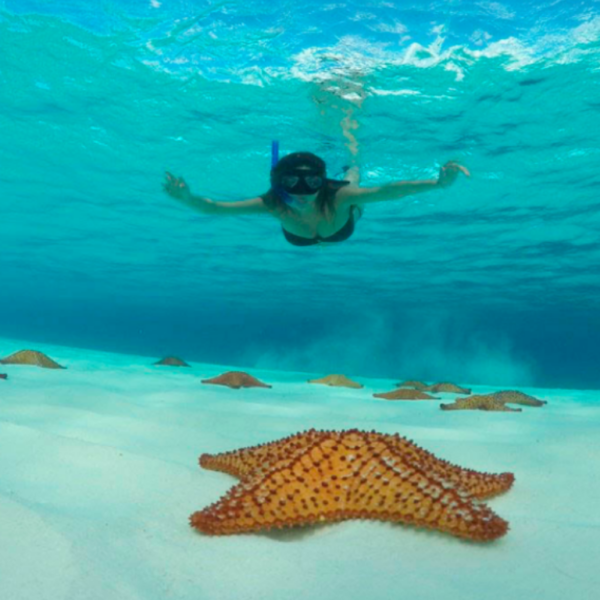 Then is off to the breathtaking El Cielo. A natural bay of crystal clear waters, named after the sea stars you may find at the sandy bottom. You’ll be able to snorkel and also enjoy leisure time at one of its unparalleled sand banks just like a gigantic natural swimming pool. This spot is just perfect for kids and adults alike. At this spot enjoy refreshments, freshly made fish ceviche, seasonal fresh fruit and snacks.